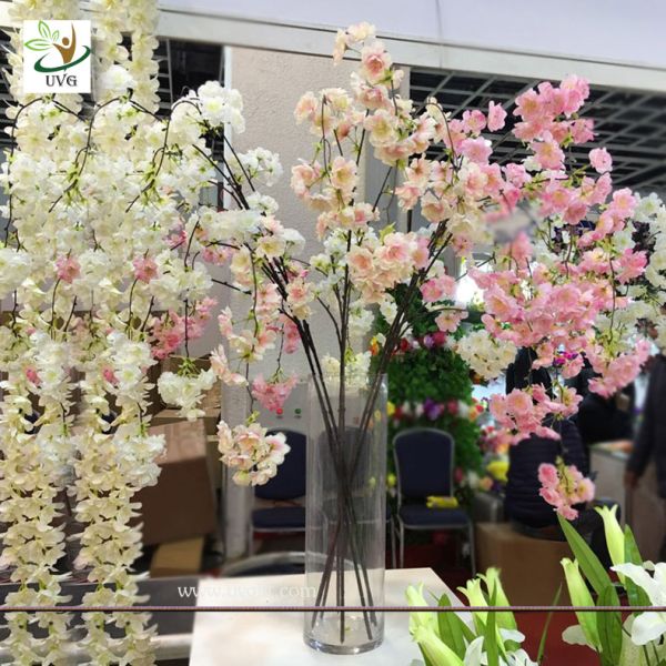 UVG CHR129 white cherry blossom branches faux silk flowers for wedding home decoration